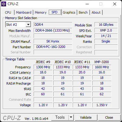 딱봐도 XMP같은데 말이 없어서 조금 이상하고 아무리 찾아봐도 정보가 없었는데요. 저랑 비슷한 시기에 물건을 받은 분과 같이 16기가 2개로 32기가 제품이 맞고 기본클럭은 2666 1.2V이고 XMP 했을때 3200 (16 18 18 38 62)1.35V 의 스펙으로 사용할 수 있습니다