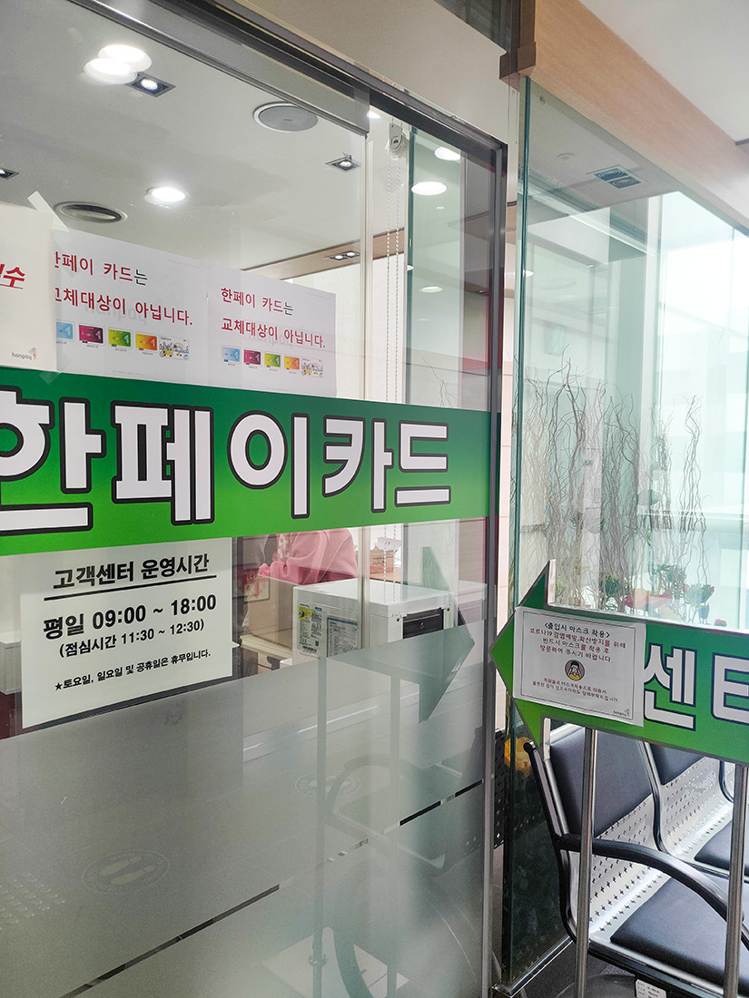 광주광역시 서구 상무중앙로 110 15층, 교통카드 고객센터에서 한페이카드 환불, 마이비카드 교체 가능