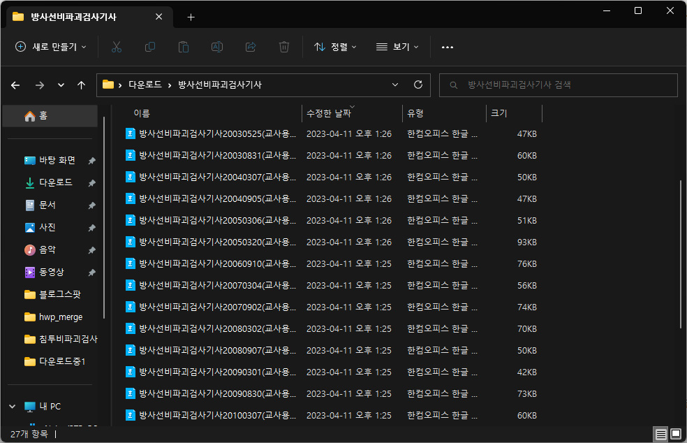 가끔이지만 여러 한글 문서 hwp파일을 하나로 합쳐야 할 때가 있어요.