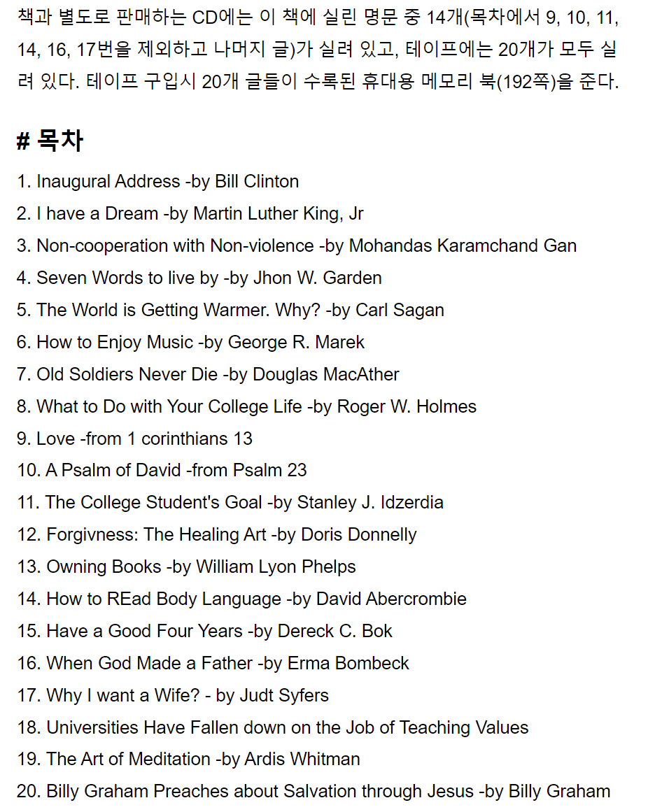2008/08/05 - [분류 전체보기] - 꼭 외워야 할 영어명문 Best20 다운로드